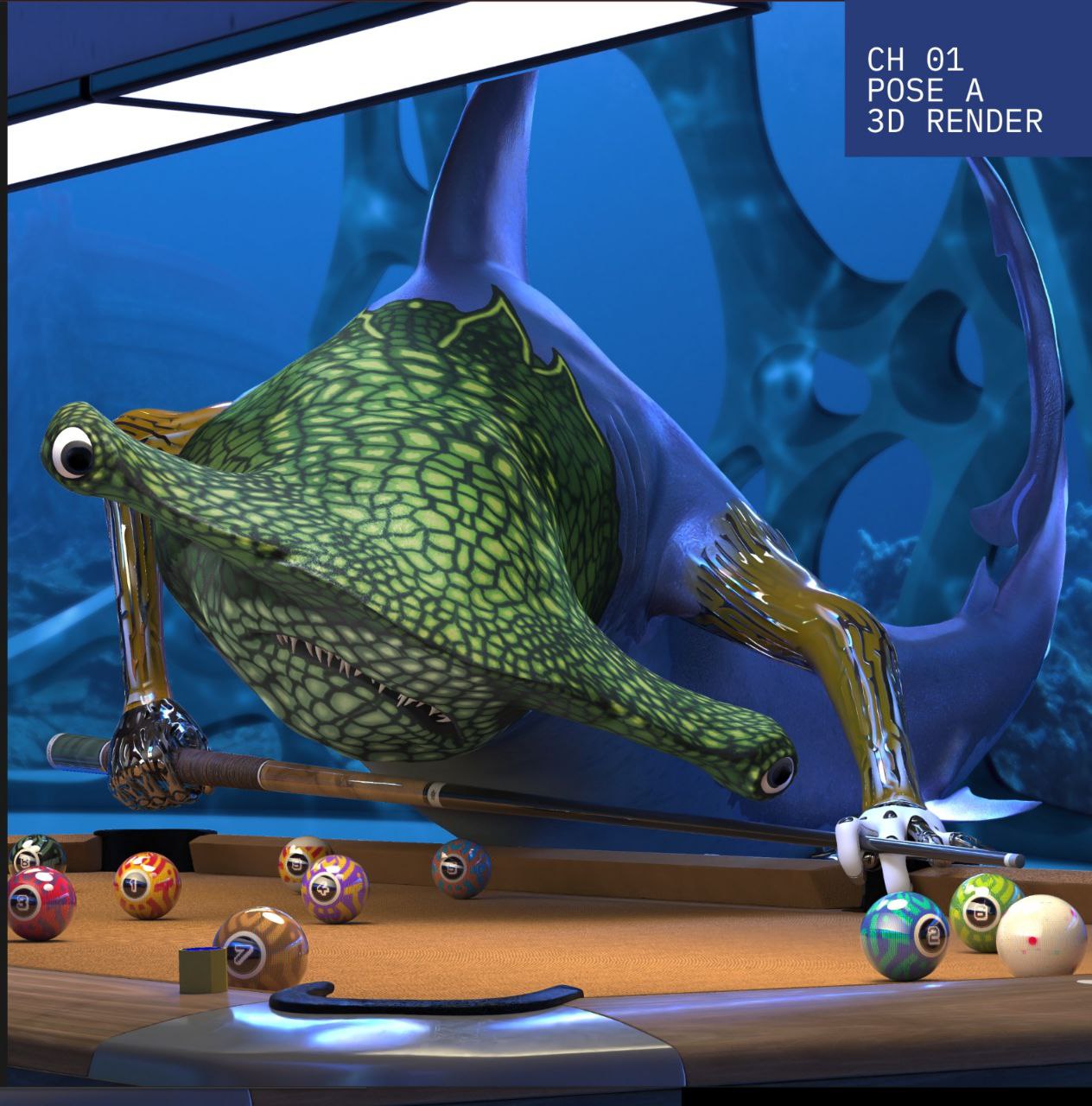 Cilj je bio razviti sistem koji omogućava automatsko renderovanje više od 10.000 unikatnih kombinacija različitih asseta (bilijar stolovi, štapovi, dodatna oprema i vizuelni elementi avatara).